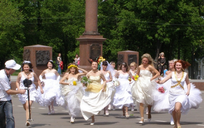 Группа девушек в свадебных платьях была замечена в субботний день на улицах Великих Лук. Прохожие останавливались в недоумении, многие снимали такое скопление невест на мобильные телефоны. Но не только случайные свидетели фиксировали перемещение девушек в шикарных платьях. Невест снимали профессиональные фотографы и видеооператоры. Они и объяснили застывшим от удивления горожанам, что те видят первый в городе парад под названием «Дефиле невест».