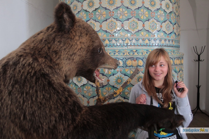 Наш длинный, насыщенный разнообразными событиями день, начался со встречи у западного въезда в город. Дети познакомились с экскурсоводом, и наш желтый автобус направился к восстановленной в прошлом году Покровской башне – самому большому из оборонительных укреплений древнего Пскова.