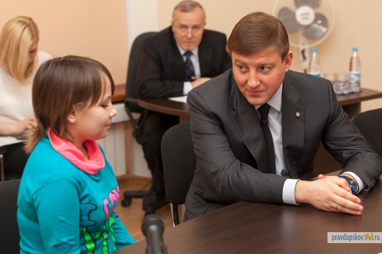 Анна Кондрашова — ребенок-сирота. Она обратилась с просьбой оказать содействие в решении вопроса о приобретении квартиры в Пскове. Начальник Управления социальной защиты населения области Армен Мнацаканян заверил, что до сентября этого года Анна получит квартиру. В 2012 году на обеспечение жильем детей-сирот и детей, оставшихся без попечения родителей, в Псковской области было выделено 150 млн рублей, в текущем — 270 млн рублей, напомнил губернатор. Вопрос Анны Кондрашовой Андрей Турчак взял под личный контроль и пообещал приехать на новоселье.