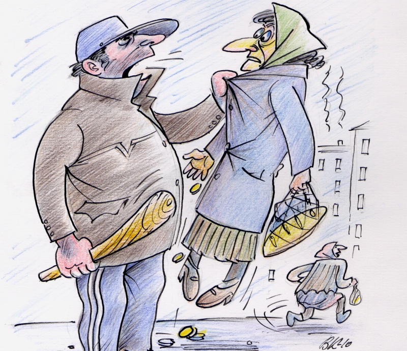 Затем Виктор переключился на женщину. Он приставил к ее голове нож и пообещал отрезать той ухо. Старик не выдержал и протянул мучителю кошелек с 240 рублями. Потом супруги отдали еще 2800 рублей. Но и этого грабителям показалось мало. Иванов снял с вешалки куртку и скрутил в жгут. Подошел к женщине, накинул жгут на шею и начал душить. Женщина захрипела и стала терять сознание.