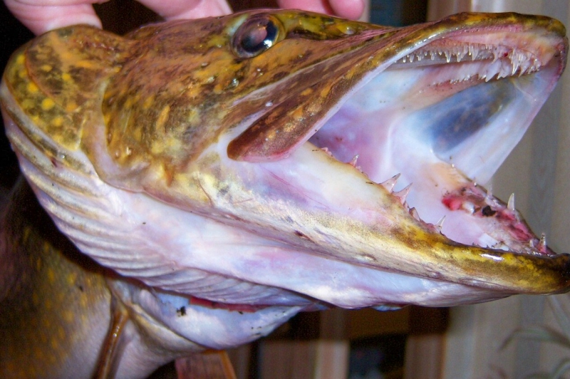 Щука от крючка освободилась первая. Я прижал ее ногой к дну лодки, а сам со слезами на глазах начал освобождаться от «наручников». Из ладони крючок выдернул сразу, а вот из пальца другой руки тройник пришлось вынимать пассатижами…