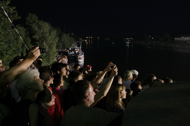 Фейерверк от калининградской фирмы псковичи назвали одним из лучших в истории городских праздников. Огни смотрели с набережной и с Ольгинского моста – правда, с последней точки не было видно струящихся потоков света, падающих с моста в Великую. Фейерверк продлился 15 минут и обошелся городской казне в 350 тысяч рублей.