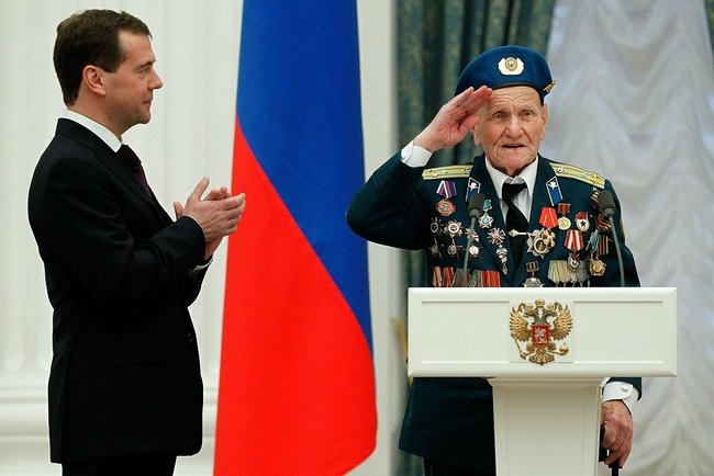 - В этом году мы также будем отмечать одну знаменательную дату, связанную с Великой Отечественной войной, – 70-летие со дня битвы под Москвой, - напомнил Дмитрий Медведев, вручая награду псковскому ветерану. - Россия всегда будет помнить стойкость и самопожертвование солдат Великой Отечественной войны, а их пример должен оставаться безусловным нравственным ориентиром для всех поколений наших граждан. Для меня сегодня большая честь вручить орден Александра Невского участнику двух войн – Финской войны и Второй мировой – Алексею Алексеевичу Соколову. Несмотря на почтенный возраст (в марте месяце, насколько я знаю, Алексею Алексеевичу исполняется 100 лет), он продолжает заниматься патриотическим воспитанием молодёжи. Давайте пожелаем ему здоровья!