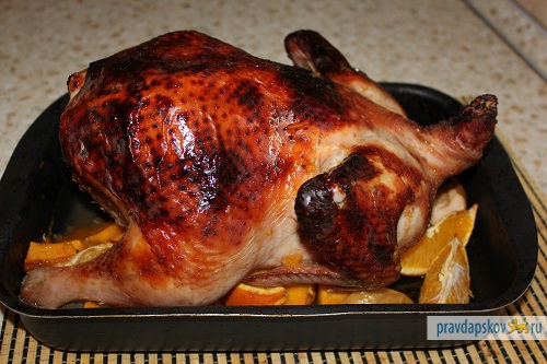 Курица, запеченная с тыквой, яблоками и апельсинами