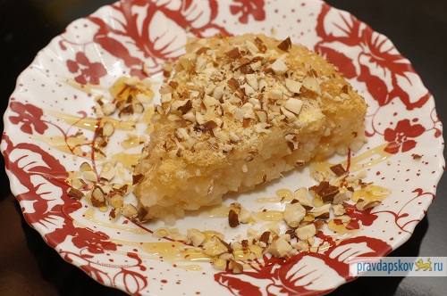 Вам понадобится: 10 средних яблок, 1 стакан риса, полстакана сахара, апельсиновая цедра (по желанию), панировочные сухари или молотый миндаль. Яблоки очистить от кожуры, удалить сердцевину. Далее сложить яблоки в кастрюлю, высыпать сахар, добавить апельсиновую цедру (если используете), залить тремя стаканами воды и поставить на огонь. Когда они станут мягкими, откинуть на дуршлаг и дать сиропу стечь. В полученном сиропе сварить рис до полуготовности. Яблоки размять в пюре, смешать с рисом (если сиропа слишком мало, можно добавить немного воды). Выложить в форму, слегка присыпать сухарями или миндалем и поставить в духовку. Выпекать при температуре 180º в течение 40 минут.