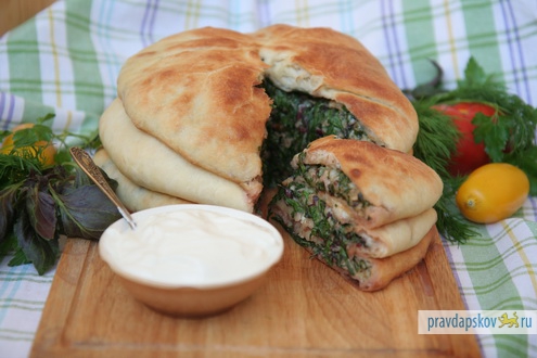 Но пусть историки выясняют, что было, а чего не было на самом деле. Нам же интересно, что это очень вкусный, сытный, недоргой и несложный в приготовлении пирог, который прекрасно подойдет как для будничного, так и для праздничного стола. Варианты начинок весьма разнообразны: картошка, листья свеклы или черемши, капуста, мясной фарш, измельченная тыква и многое другое. Во всех случаях неизменным остается только сыр. Кстати, сыр должен быть мягкий и жирный. Подойдут «Сулугуни», «Адыгейский» или брынза.