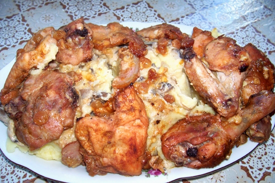 Через пятнадцать минут закроем крышкой форму и оставим еще на 15 минут. Получается курица сочная, нежная, аппетитная, деликатная и весьма интересного вкуса. Такую курицу будет не стыдно подать на стол. По этой же схеме можно приготовить бедрышки, сердечки, желудочки, печенку, куриные крылышки.