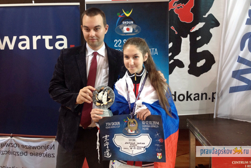 В середине октября в Польше прошел международный турнир по каратэ Kohai World Cup. Состязания проходили в двух дисциплинах – ката и кумите. На 10 татами 1200 спортсменов из 32 стран отстаивали право на медали. Воспитанница ДЮСШ «Мастер» Дарина Зайцева привезла с этих соревнований в Псков «золото».Дарина смогла победить всех противников в категории «кумите юниоры». Она уже во второй раз принимает участие в этих соревнованиях. Два года назад в Милане (Италия) ей удалось занять третье место, и теперь после упорных тренировок золотая медаль по праву досталась именно ей.