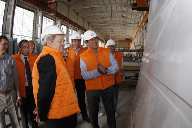 В ходе своего визита они побывали Производственно-строительное объединение ЖБИ-1. По приезду гости первым делом обратили внимание на ухоженность территории, на которой располагается предприятие: альпийская горка, фонтан, аккуратно подстриженные газоны.