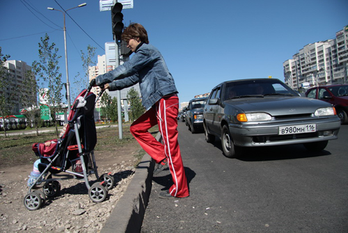 1. Первые путешествия «через проезжую часть и обратно» начинаются, когда ребенок еще совсем маленький и большую часть прогулочной жизни проводит в коляске. Так вот, когда переходите через дорогу, коляску можно катить перед собой, тянуть за собой или везти справа. Первый способ – самый распространенный и самый опасный. Как правило, транспортное средство малыша по уровню значительно ниже, чем любой автомобиль, поэтому водителю с дороги его просто не видно. А значит, высока вероятность, что водители (особенно из дальнего ряда) не заметят ваш экипаж и притормозят слишком поздно. И под колеса попадете не вы, идущие сзади, а ваш малыш.