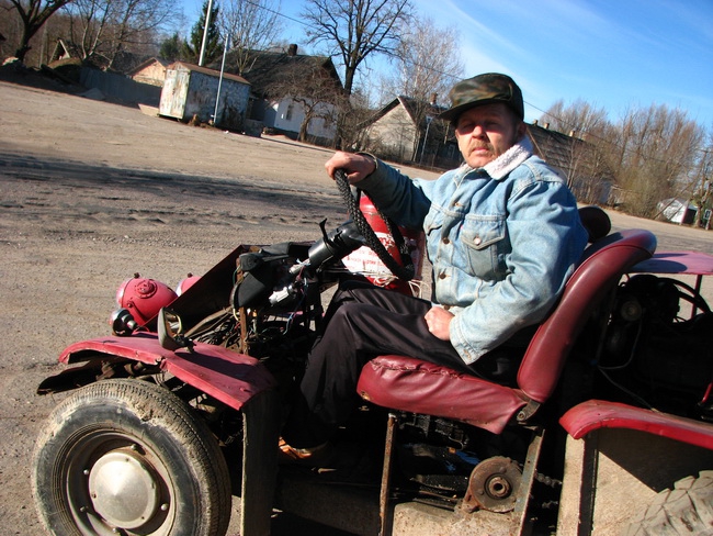 Всю жизнь Юрий Николаевич работал водителем в родном поселке. Сейчас на пенсии. И вот уже более 30 лет увлекается необычным и полезным делом – сборкой собственных самодвижущихся механизмов. И пахал, и сеял на них, и дрова заготавливал с их помощью. Семь различных моделей изготовлено за это время староизборским «автопромом». Какие-то уже свое отработали, а две последние из них и сейчас служат исправно как средства передвижения. Пригласил меня Юрий Николаевич и в свои гаражи-мастерские, откуда регулярно один раз в 3-4 года выезжает на изборские дороги очередной чудо-автомобиль.