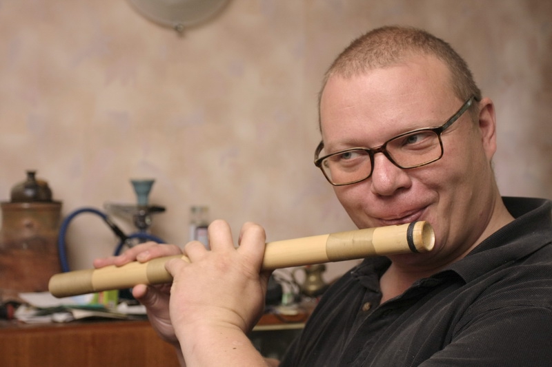 Прикладывает флейту к губам – и из японского инструмента льется простая и оттого очень красивая японская мелодия.