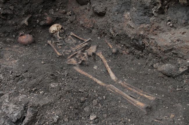 В средней части коридора Никольского захаба открыто парное погребение. В одной могильной яме обнаружены останки двух подростков женского пола. Одна из девочек была погребена с браслетом на руке. Такие браслеты были характерной принадлежностью женского костюма в 14 веке. Смерть девочек, скорее всего, связана с моровым поветрием (чума), о котором известно из летописных источников. Здесь же обнаружены остатки крупной печи 16 века. Рядом с печью найдена литейная форма для отливки пуль.