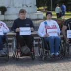 Они вышли на акцию с лозунгами «Сильнее всех», «Паралимпийцы – гордость России» и «позор WADA»