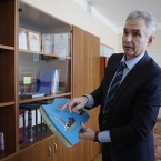 Некоторые детали обстановки кабинета военкома засекречены, но нам он показал элемент обшивки ракетного контейнера, альбом о призыве и – неожиданно – цветы