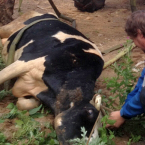 Корова, упавшая в пруд, два дня ждала своих спасителей
