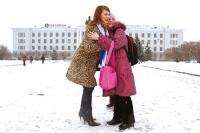 В среду, 21 января, с 13.00 до 14.00 в центре Пскова прошла необычная акция. Студенты с яркими шарфами подходили к прохожим и просили разрешения обняться.