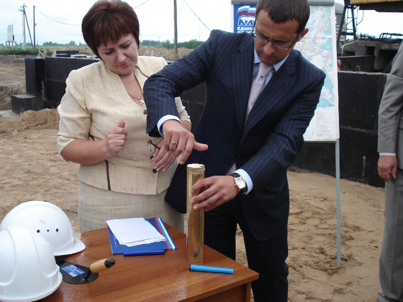 Во вторник секретарь политсовета регионального отделения партии «Единая Россия» Елена Бибикова и заместитель Губернатора Геннадий Безлобенко поставили свои подписи под посланием потомкам, опустили его в металлическую капсулу, завинтили крышку и замуровали цилиндр в нишу бетонного блока фундамента будущего Ледового дворца.