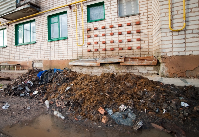 Из окна по-прежнему веет экскрементами: люфт-клозеты не чистились уже пару недель. При нас Любовь звонит в управляющую компанию, просит к телефону заместителя начальника.