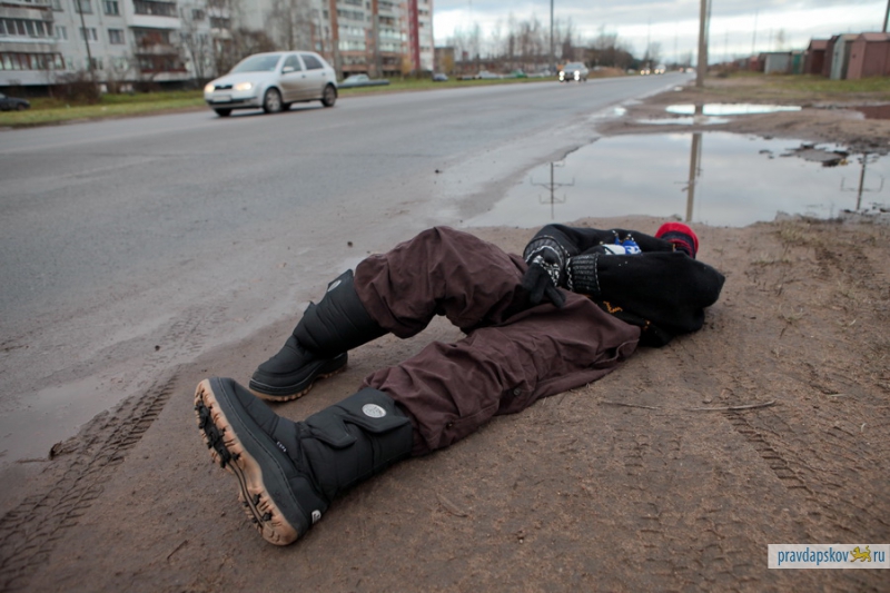 Напомним, неделю назад наше экспериментальное бюро провело совместное с ГИБДД и МЧС мероприятие (см. «Гоша на обочине. Часть 1» от 14 ноября). Мы взяли тяжеленный манекен, который обычно используют на учениях водолазы, приодели его, и отправились к западной границе Пскова. Там мы дважды укладывали «Гошу» (так прозвали нашего подопытного) у края дороги и, слившись с местностью, отслеживали реакцию водителей недвижимое тело.