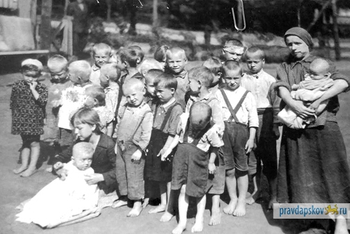 В редакцию пришла читательница. Принесла письмо. Оказалось, она малолетняя узница. Принесла в редакцию фото, на котором она, еще девочкой, вместе с другими псковскими ребятишками, угнанными в Германию.