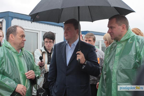 На фото: В июне 2012 года Игорь Максимов (слева) рассказывал губернатору Андрею Турчаку о строительстве водозабора. В марте 2013 года глава Пскова Иван Цецерский и глава администрации Пскова не могут внятно объяснить, почему уволен директор «Горводоканала».