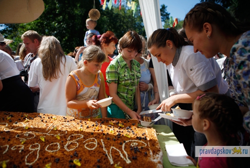 Главным отличием праздника в этом году стала его благотворительная направленность. Кусочек вкуснейшего 110-килограммового медовика можно было попробовать, сделав взнос в любом размере на лечение трехлетней Миланы Кауновой. У девочки диагностирован врожденный порок сердца и магистральных сосудов.