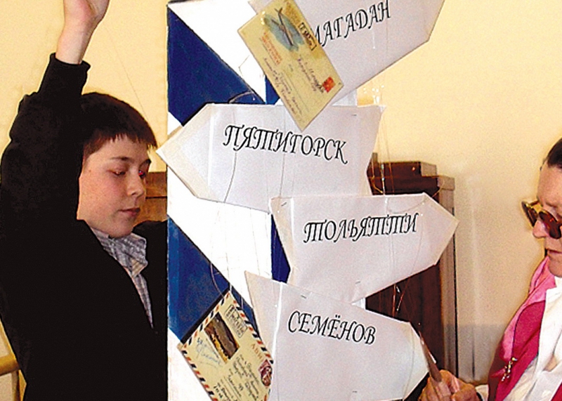 Кроме того, с легкостью необычайной и счастливой школьники сделали выставку «Портрет письма в музейном интерьере». Экспонатами стали предметы из фондовых коллекций заповедника «Михайловское», большей частью – дары, которые получила за чуть более года своей работы заповедная Музейная почта. Попали в экспозицию и письма, которые в ходе конкурса дети писали Пушкину и о Пушкине, и другие ребячьи «домашние заготовки» – рассказы о литературной славе родных городов, письма из прошлого века и современное письмо, адресованное всем «отрокам во Вселенной» (его подготовила делегация из Пятигорска). Чтобы «обустроить» экспозиционное пространство, молодежь раскрасила и нарядила, как новогоднюю елку, стилизованный верстовой столб: на символ музейной почты повесили указатели с названиями городов, откуда прибыли новоиспеченные устроители выставки, и конверты с письмами. А на «макушку» всей этой праздничности водрузили жизнерадостную ворону из крашенной гуашью бумаги…