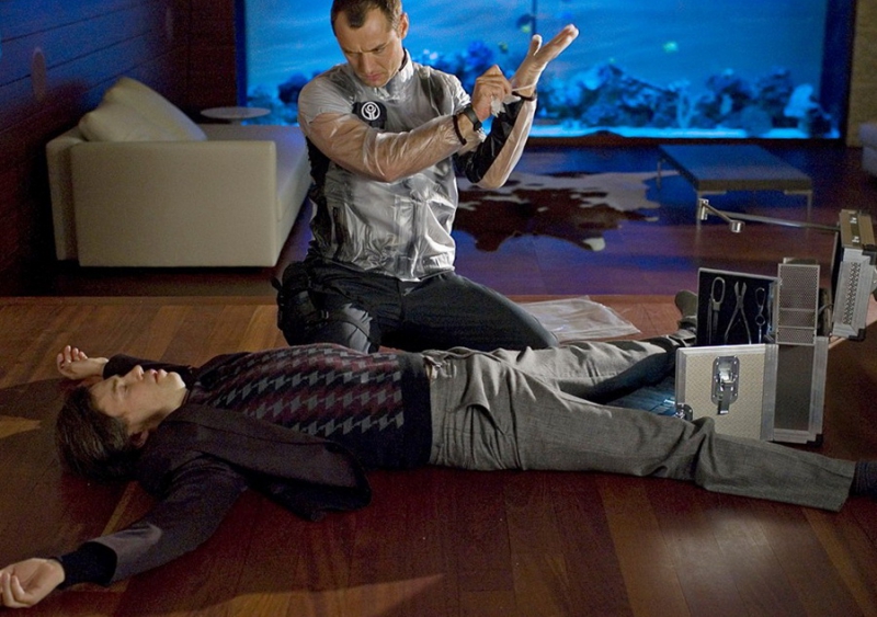 «Потрошители» – кино о суровых буднях органов внутренних дел, а именно о тех, кто ловко вырывает у живых людей почки, печень, сердце и далее по списку. Люди, видите ли, понабирали в кредит свои органы, а отдавать не спешат. Поэтому на поиски должников отправляются крепкие безжалостные ребята (что-то вроде судебных приставов), которые с особой жестокостью возвращают неоплаченный товар. Делают они это по долгу службы, без конца повторяя: «Работа есть работа». Идеальным потрошителем оказывается герой, которого играет Форрест Уитакер, а вот герой Джуда Лоу надрывается на работе и сам теряет сердце. Приходится вставлять новое, в кредит.