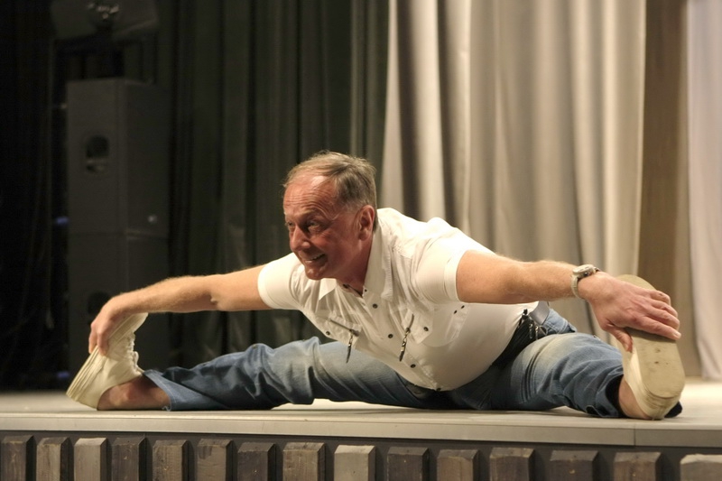 Заводился он перед концертом не только с помощью слов. Как бы невзначай, продолжая отвечать на вопрос, Задорнов присел на сцену и стал раздвигать ноги, то есть садиться на шпагат. «Мешают джинсы», – объяснил он недостаточный размах. – Я йогой занимаюсь, но осторожно, потому что йога – отход от жизни».