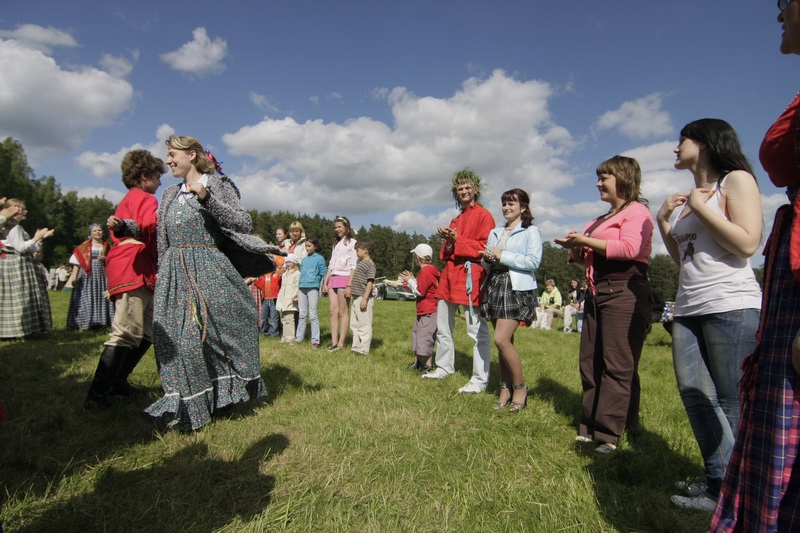 - Это «Просо сеяли», - показывает на два ряда играющих Александр Пятницев (фото ПЯТНИЦЕВ). – Всем забавам, которые мы здесь, на поляне, устраиваем, лет по двести, не меньше. Слова не придуманные, а записанные в фольклорных экспедициях по Псковской области.
