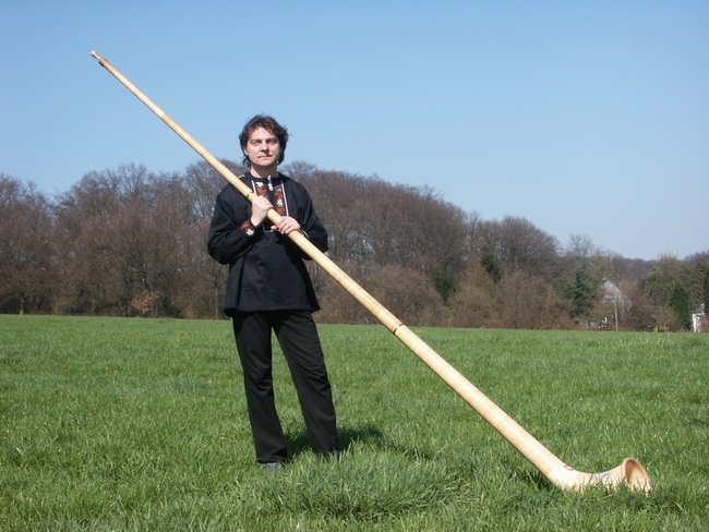 – Альпийский рог (нем. Alphorn) – инструмент, достигающий в длину 4-5 метров. Изготавливается из пихты. Дерево должно быть совершенно прямым, без сучьев. Звуковая гамма у рога примерно такая же, как у натуральной трубы. Судя по всему, именно от рога ведут свое начало знаменитое йодль-пение фальцетом и другие песни альпийских пастухов.