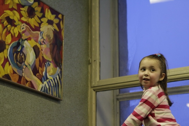 На открытии выставки активную жизнь вели две дочки Александры Овчинниковой –Алена и Ася. Старшая фотографировала младшую, а фотографы в это время наводили объективы на обеих… Судя по картинам, девочки хорошо себя чувствуют не только в жизни, но и на холсте. Чем холоднее на улице, тем теплее картины.