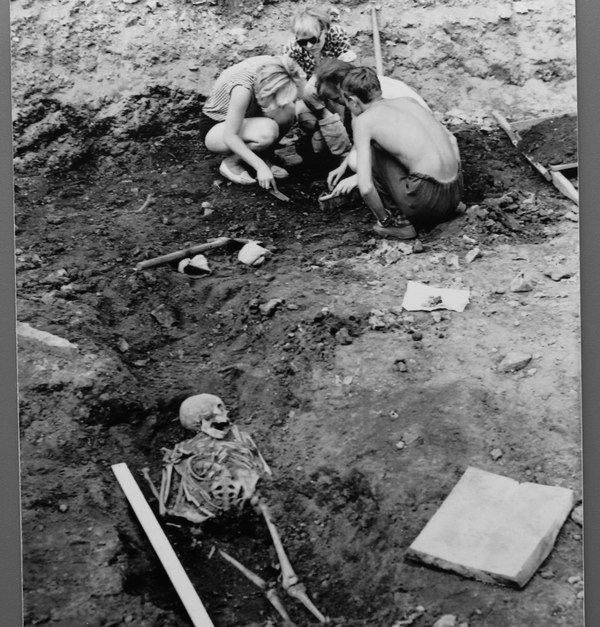 В день девяностолетия знаменитого реставратора и фотографа Бориса Скобельцына в Приказной палате Псковского кремля открылась необычная выставка. Посетители входят в зал и попадают сразу в две эпохи. Во-первых, на пятьдесят лет назад, потому что на черно-белых фотографиях Бориса Скобельцына – Довмонтов город того времени. После войны там был пустырь. Тысячелетний культурный слой взялась изучать археологическая экспедиция Государственного Эрмитажа и ее руководители – Георгий Гроздилов и Василий Белецкий. Они, конечно, попали в кадр. Но здесь же и простые археологи, такие как Петровна: телогрейка, крестьянский платок на голове, в одной руке – нож, в другой – неожиданно модная сумка... Именно такие, как Петровна, своими руками перебрали исторические пласты, открыв для нас фундаменты псковских храмов. 105 фотографий, большинство из которых раньше никогда не публиковались, тоже своего рода культурный слой. В дополнение к тому, что раскопала экспедиция Эрмитажа. В объектив Бориса Скобельцына попали школьники, паломники… Интересные лица, примечательная одежда (косоворотки, кепки с околышками, шаровары). На одной из фотографий археолог Георгий Гроздилов присел на край раскопа и читает газету. Между прочим, «Псковскую правду» за 14 августа 1960 года (снимок был сделан 15 августа, а номер газеты вышел накануне. Мы разыскали этот номер в наших архивах и прочли его.