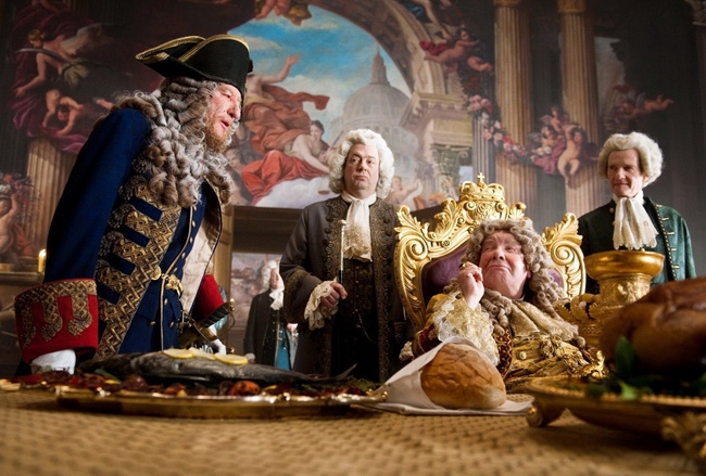 Пираты и им сочувствующие пускаются на поиски двух чаш, святого источника и слезы русалки (чуть не написал – пускаются в пляс). Хотя почему бы и нет? Весь фильм режиссер, ранее снимавший мюзиклы, выстроил как череду музыкальных номеров. Это, разумеется, не танцы в чистом виде. Однако любая погоня или фехтовальная сцена в сопровождении соответствующей музыки выглядит как головокружительный балет и одновременно цирковой трюк. Получается так, как когда-то в песне «Капитан Воронин» спел Борис Гребенщиков: «На каждого, кто пляшет русалочьи пляски, / Есть тот, кто идет по воде». Вместо капитана Воронина – капитан Джек Воробей. Воробей - птица более шустрая, чем ворон, что герой Джонни Деппа многократно доказывает. Он даже привязанный спиной к дереву умудряется забраться по стволу наверх и продолжить свою беспечную битву со всеми. Похожие на сверхзвуковые акулы русалки буйствуют, рвут и мечут (но не икру). Гектор Барбосса мстит за утраченную ногу и глушит ром прямо из своей деревянной ноги. В далекой Англии смешит себя и всех окружающих толстый король Георг II (Ричард Гриффитс). Испанский десант безжалостно борется с языческими предрассудками. Жизнь кипит, как девятибалльный шторм.