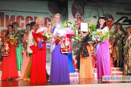 Со сцены Оксана, ее блондинистая голова, грациозное тело светились ярче всех софитов. Были заметны и слезы радости на лице, перемешавшиеся с тушью и блестками, и искреннее уважение к остальным участницам, с которыми Оксана прошла длительный путь. Звание второй миссис завоевала Ольга Куранова, третьей - Ксения Чернова. Специального приза от «Комсомольской правды» удостоилась Юлия Смирнова. А миссис «Псковская правда» стала самая возрастная участница конкурса – Наталья Петрова, с чем мы ее особенно поздравляем.