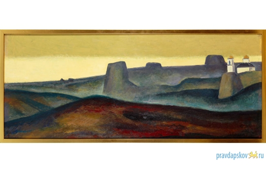 - Размышляя о содержании росписей, я пришел к выводу, что на стенах палаты должны быть изображены облики двух великих людей русской истории и культуры, жизнь и деятельность которых связана с псково-изборской землей, - отметил Петр Оссовский. - Святой равноапостольной княгини Ольги, принесшей на эту историческую землю православную веру и заложившей основы русской государственности, а также великого поэта, основателя русской словесности Александра Пушкина, поэзия которого обрела на псковской земле глубоко национальный характер и пронизана идеями православия.