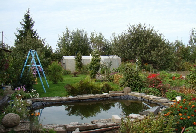 Не смогла равнодушно пройти «Псковская правда – Вече» и мимо роскошных цветников Сухониных. На участке они повсюду – вокруг искусственного водоема, на клумбах и в кашпо перед входом в дом. Не зря в позапрошлом году на городском конкурсе цветов жюри присудило им гран-при.