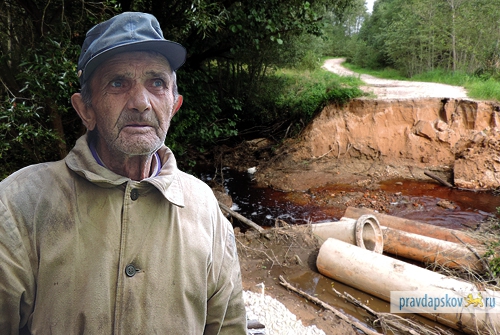 Жители деревни Большие Невадицы Псковского района уже две недели отрезаны от внешнего мира. В результате ливневых дождей протекающий в 4 км от деревни Кобылий ручей размыл дамбу, по которой проходила автомобильная дорога в деревню. Теперь путь в населенный пункт завершается оврагом. Через него и пешком-то достаточно сложно перейти, а уж проехать автотранспорту и вовсе не представляется возможным.По словам местных жителей, участок дороги оказался размыт, потому что трубы под дамбой, через которые протекал ручей, засорились. Вот поднявшаяся вода и хлынула прямо на дорожное полотно. В итоге – десятки человек в двух деревнях Большие Невадицы и Межник оторваны от мира.