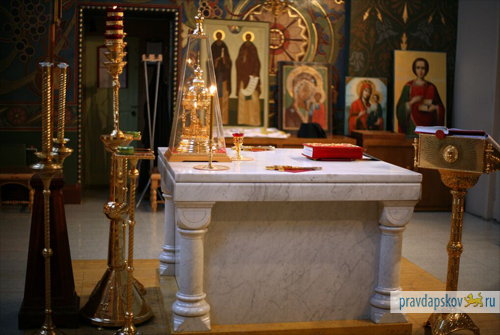 Святой престол — освященный четырехугольный стол для совершения Евхаристии. Находится в центре алтаря храма. На престоле в Святых Дарах таинственным образом присутствует Сам Господь.Прикасаться к престолу и к предметам, которые на нем находятся, а также находиться по богослужебной надобности в пространстве между престолом и Царскими вратами могут только священнослужители.