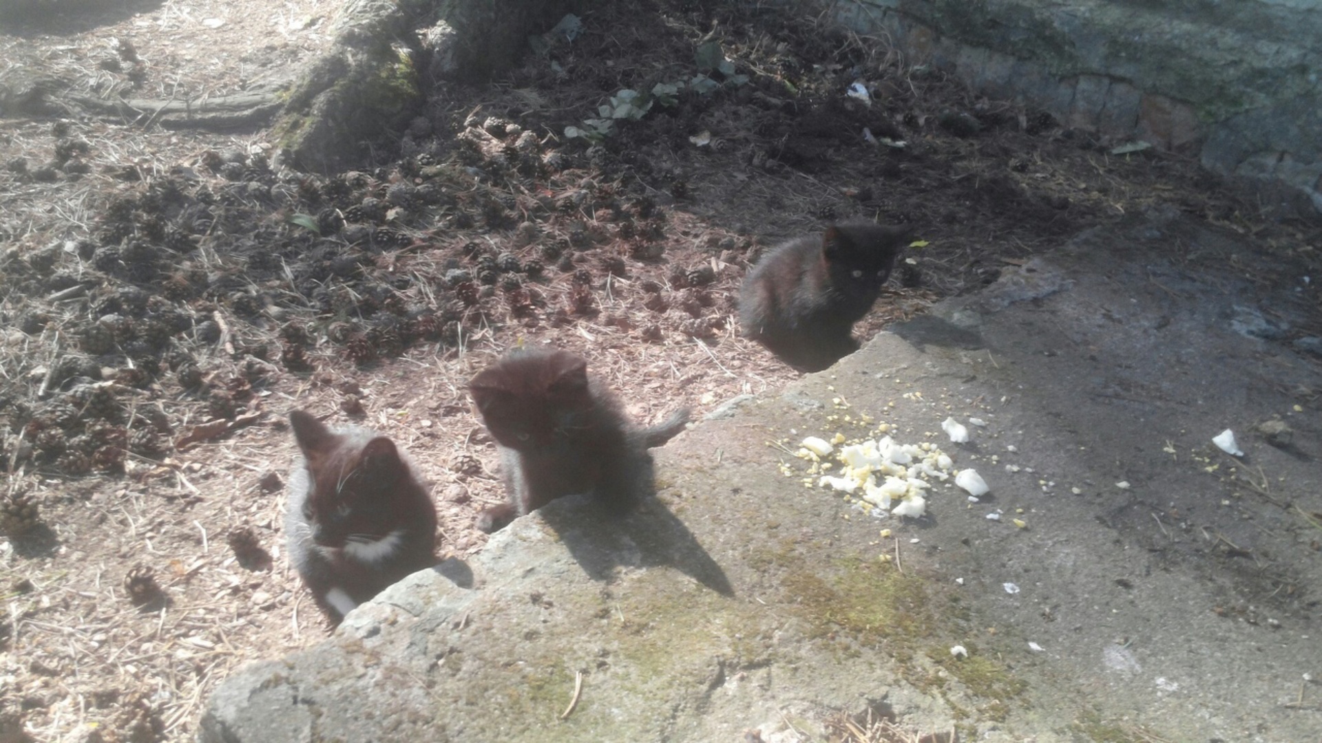 Приехавших животных пока практически невозможно сфотографировать. Они абсолютно ручные и сразу лезут обниматься-целоваться. Все очень голодные, взрослые особи, не стесняясь, перехватывают пищу у собственных котят.