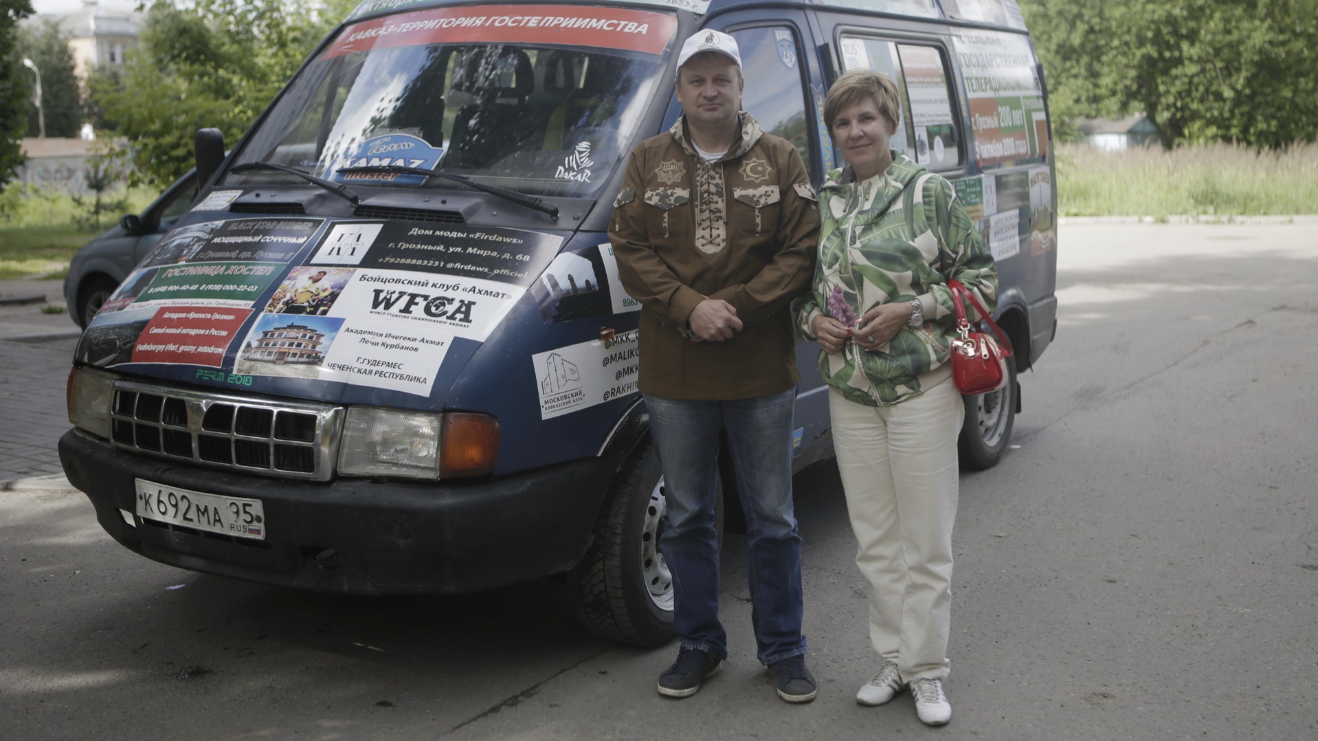 На машине — много разных наклеек. На одной написано: «Кавказ — территория гостеприимства».— Меня интересует развитие двух регионов — Чеченской Республики и Ингушетии, потому что они рядом. В советское время там было много туристов. И сейчас снова туризм развивается, — отмечает он.