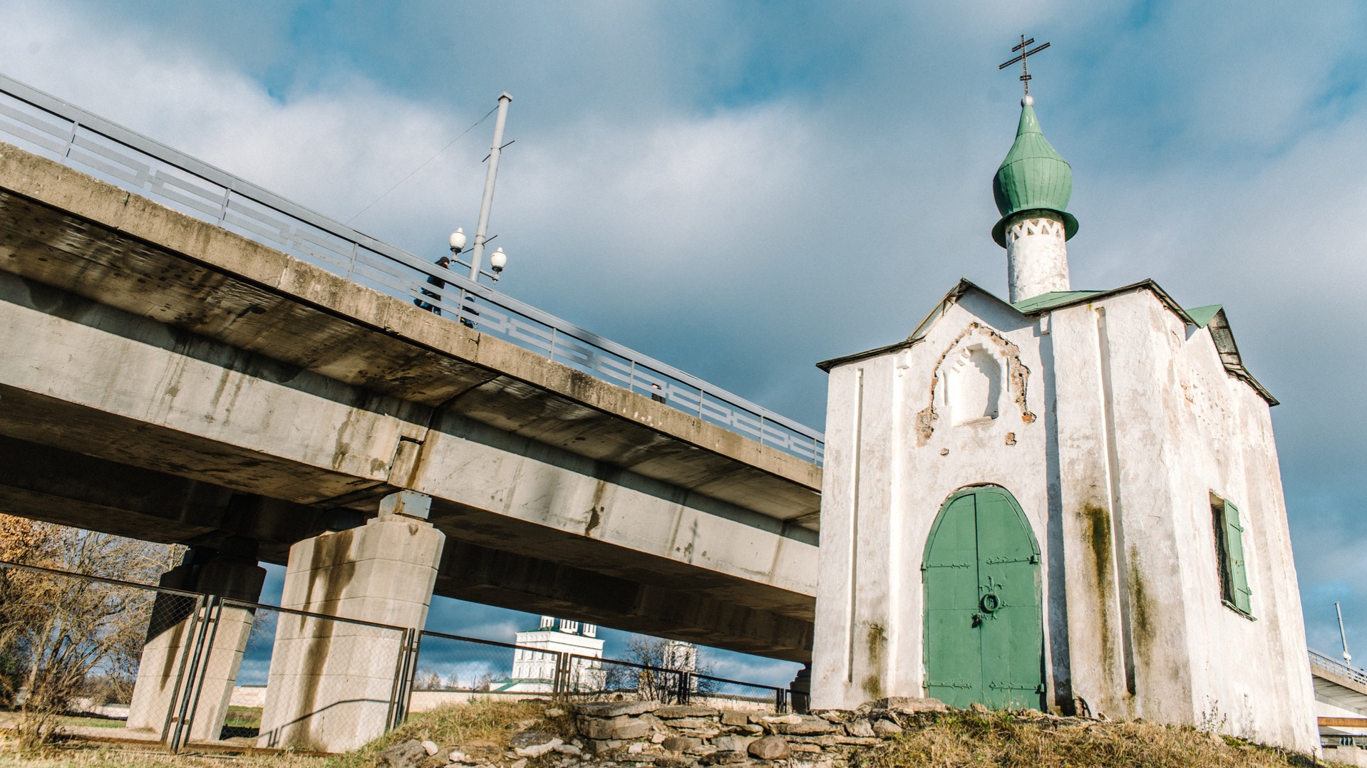 Часовня, которую видят современные псковичи, — не совсем щусевская. Ее форма несколько отличается от той, что видели жители города век назад. Кроме того, спуская часовню вниз, ее развернули на четверть оборота против часовой стрелки — так, чтобы вход оказался с более традиционной западной стороны.