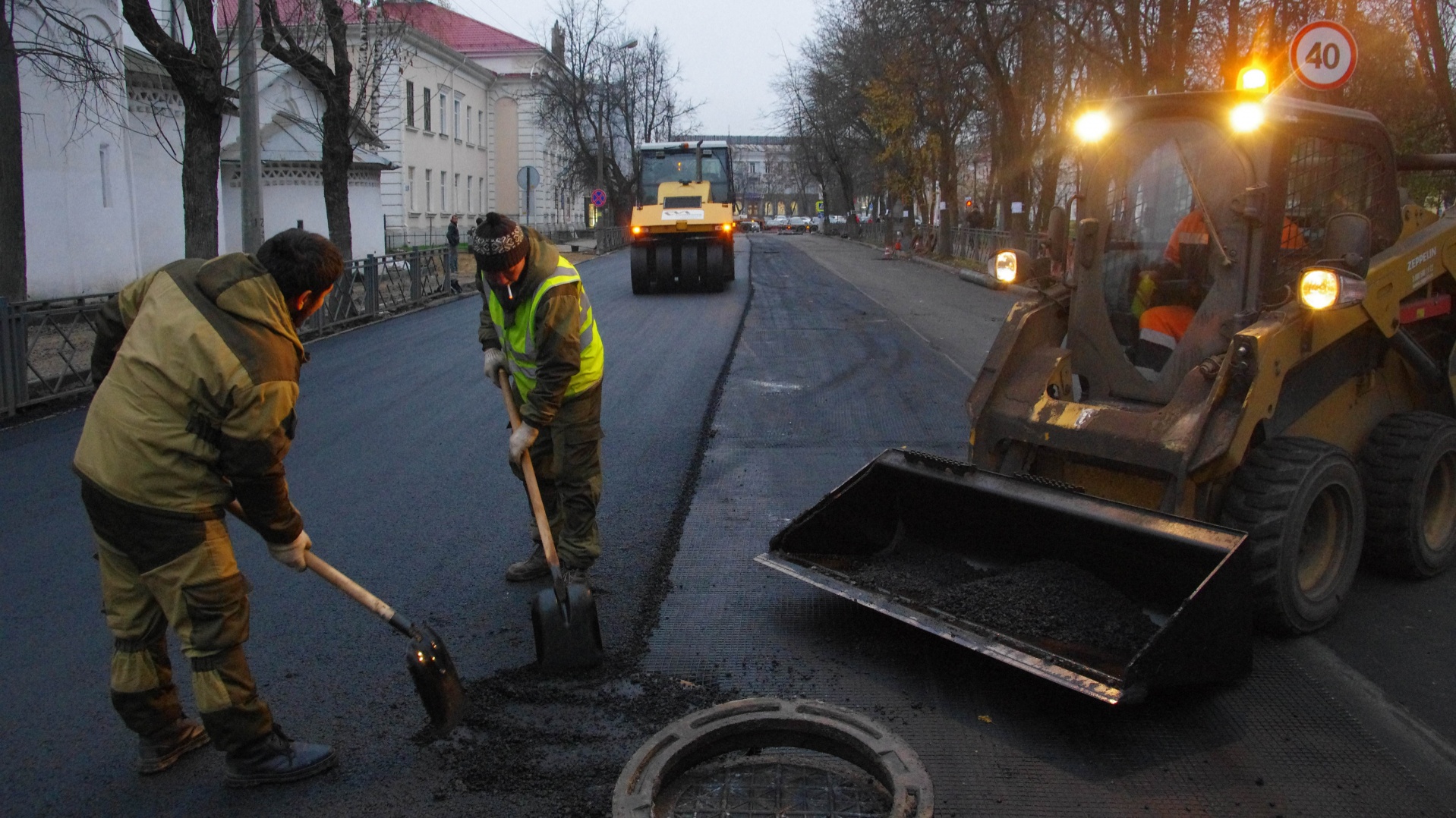 Дорожные работы на улице Советской. Центр города готовят к большому празднику.