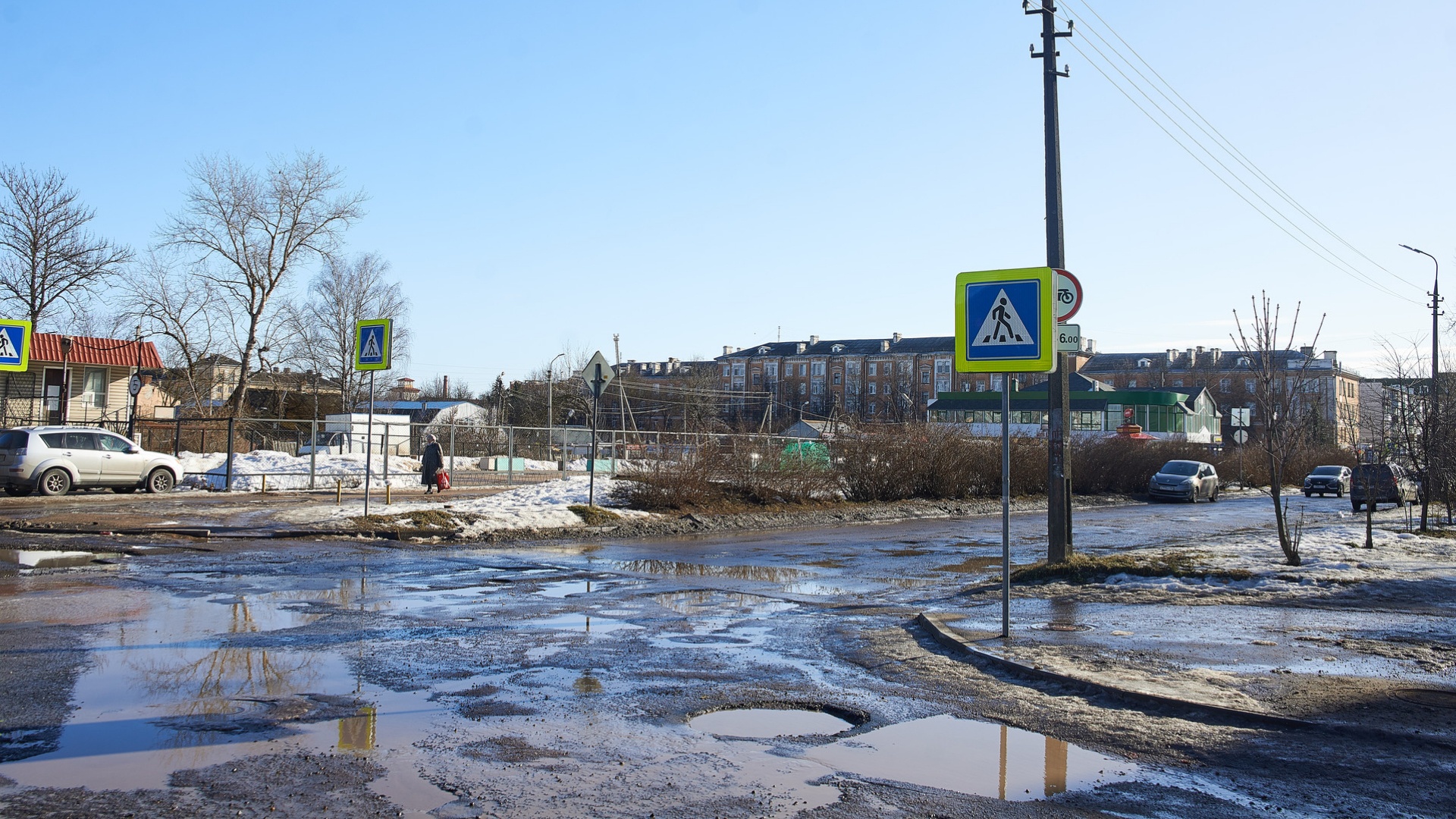 Одна из центральных транспортных артерий города - улица Юбилейная, к концу зимы превратилась в проселочную дорогу.