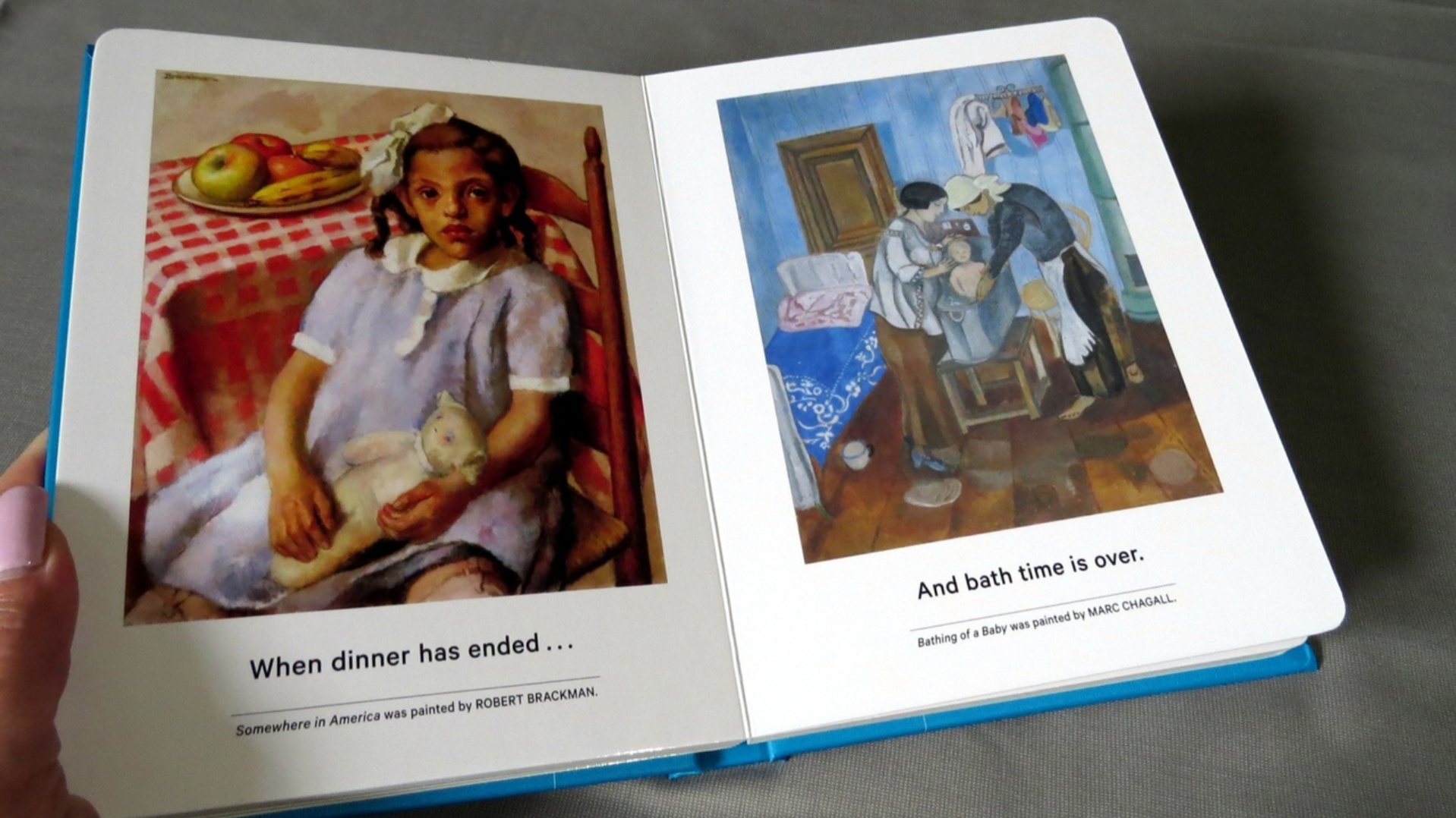 — Осенью нам написали письмо из Лондона, из издательского дома Phaidon Press. Просьба была привычная — сделать фото картины Марка Шагала «Купание ребенка» из коллекции Псковского музея и оформить разрешение на использование изображения. Издательство задумало выпустить детскую книжку «My art book of sleep», которую можно полистать перед сном. Изюминка книги — изображения картин известных художников из различных музеев мира на тему сна.