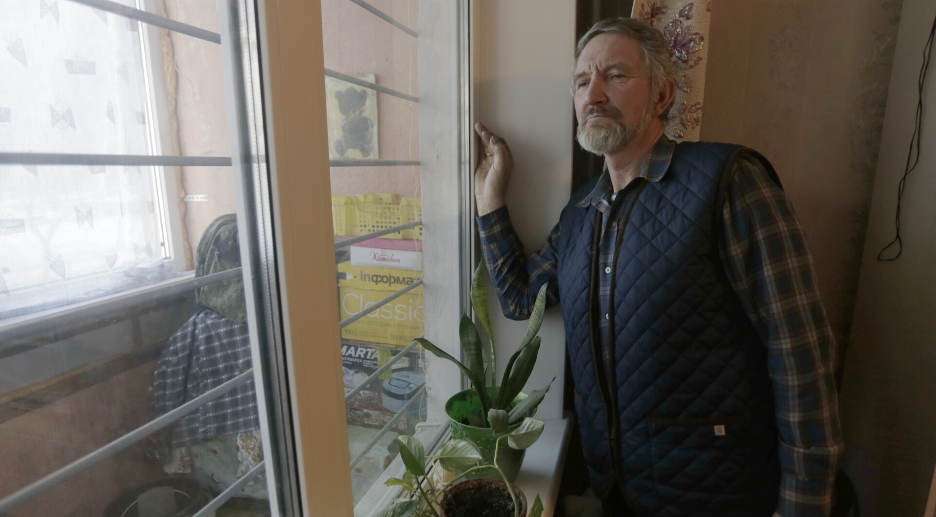 Висящая на окне решетка, безусловно, вызывает сочувствие. Не очень-то приятно смотреть на мир через железные прутья. Да и занавеска на окне застекленной лоджии — тоже дело рук Валерия Ивановича - еще один фактор, оставляющий обитателей квартиры без полноценного обзора и солнечного света.