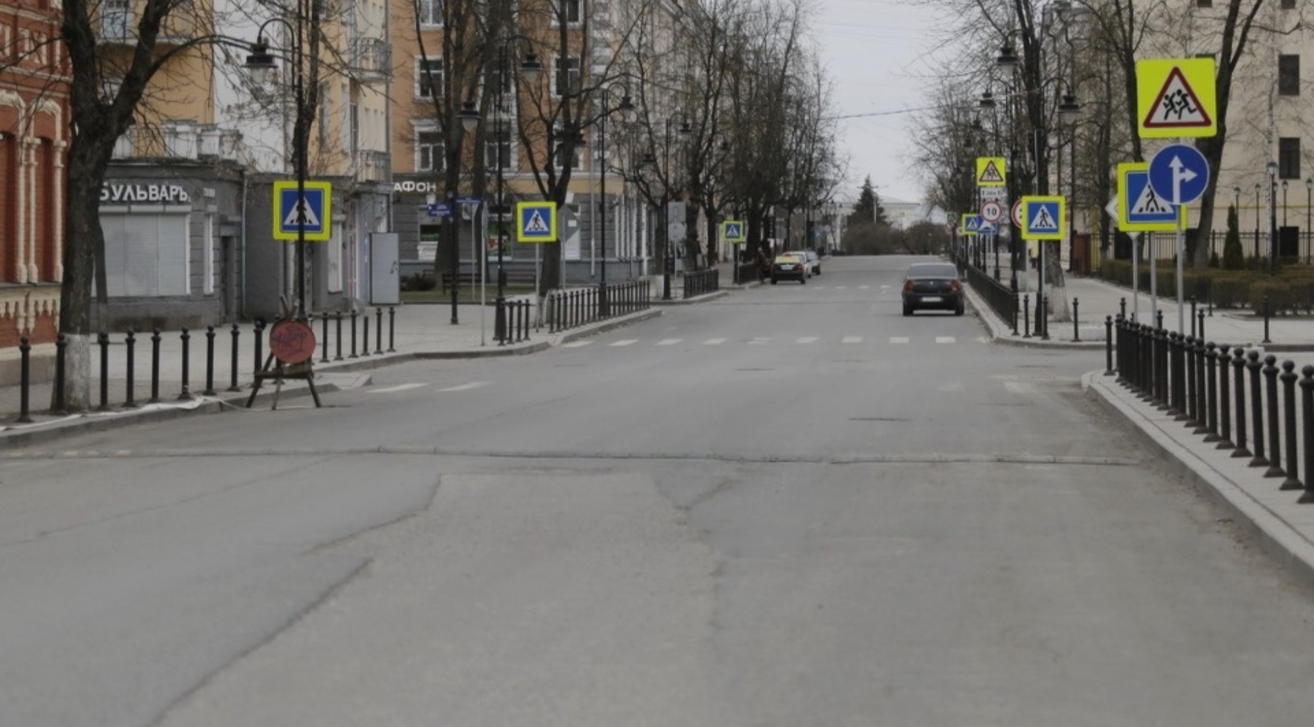 Кстати, машин и пешеходов на улицах в последние дни стало заметно меньше. За окном - абсолютно пустая улица, на которой лишь припаркованные вдоль дороги автомобили.