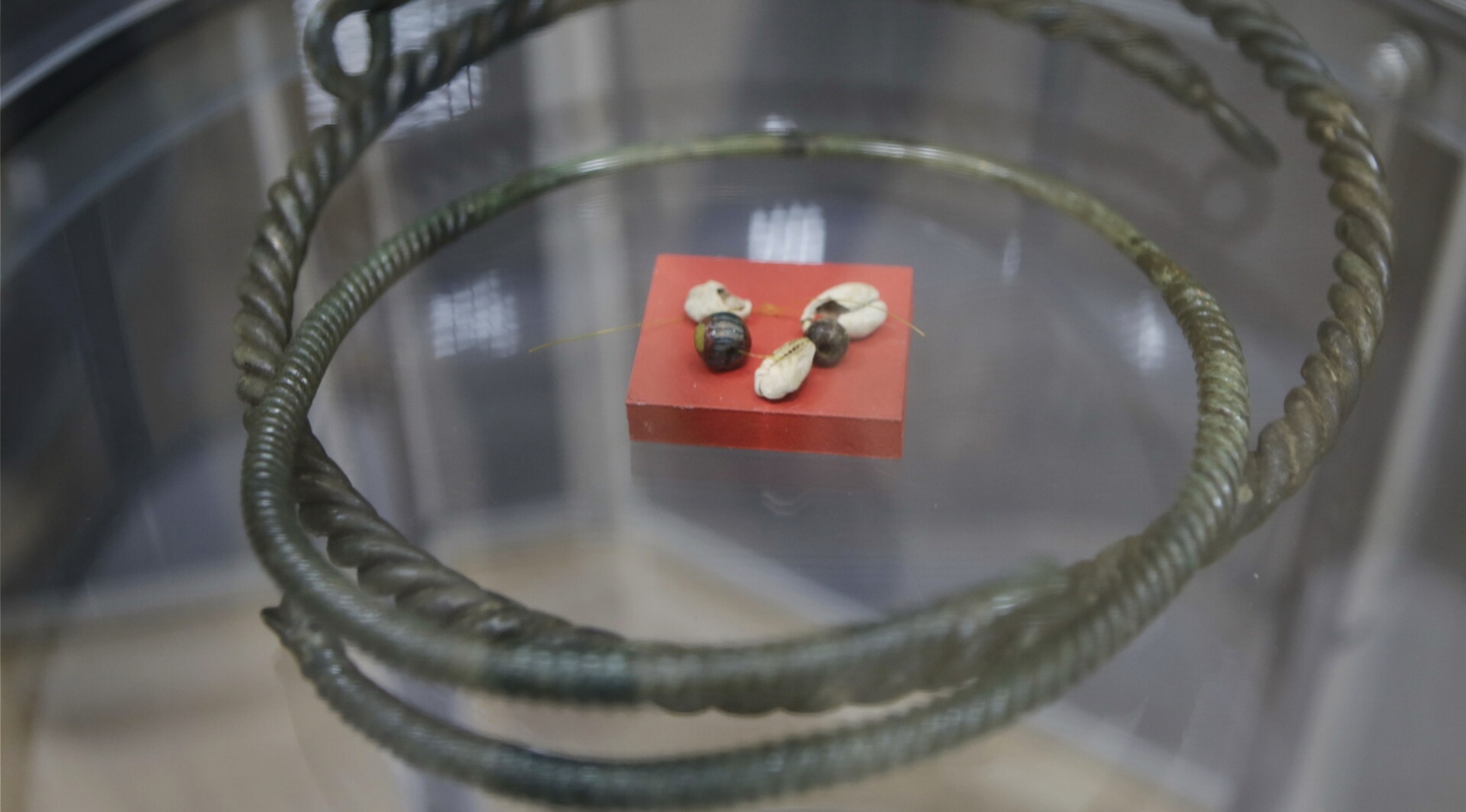 Он обратил внимание на то, что в сумочке погребенного мужчины лежали кусочки полосатых камешков.