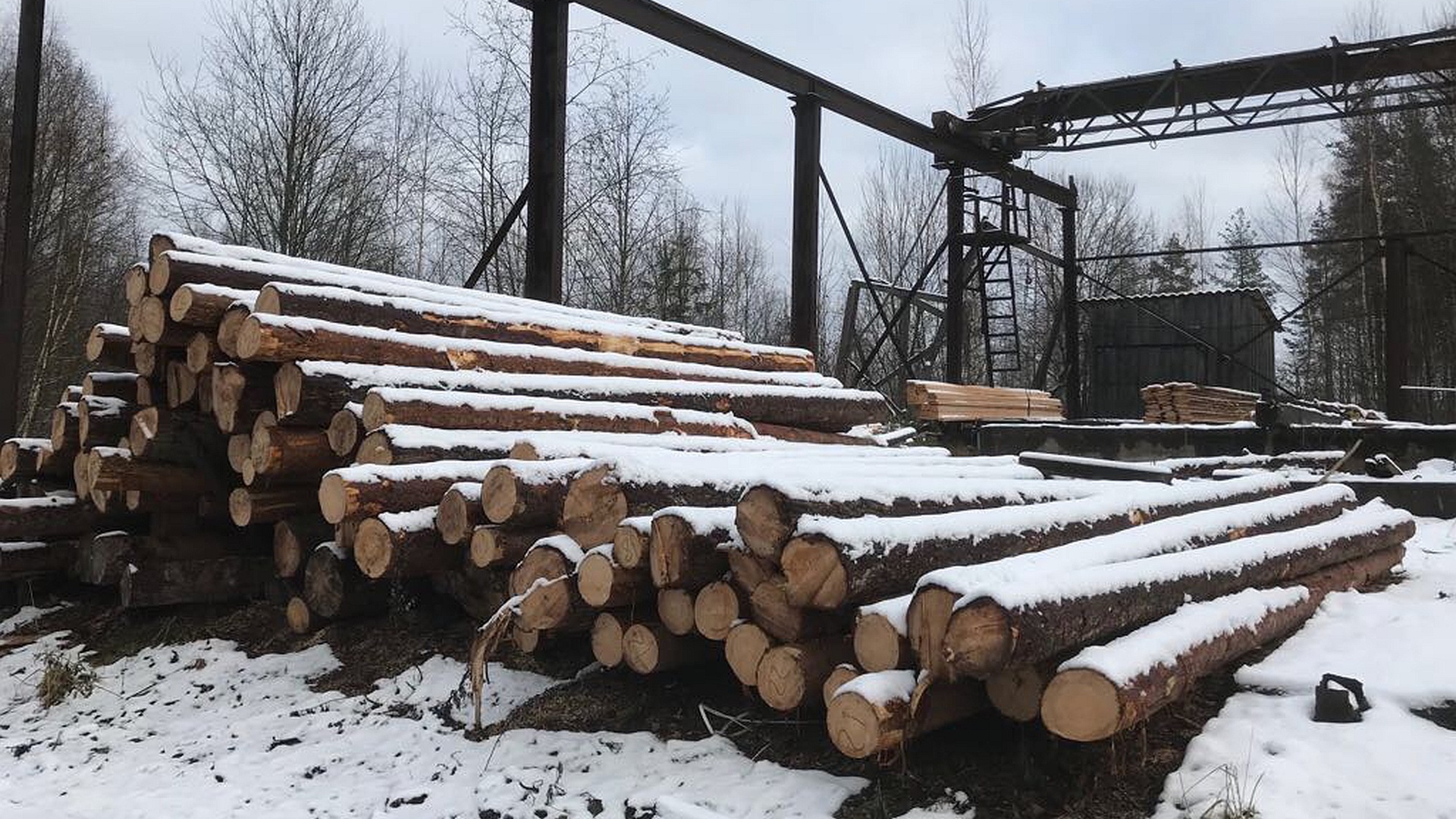 На лесопилке лежат более 100 бревен. Хозяина леса полиция пока не нашла